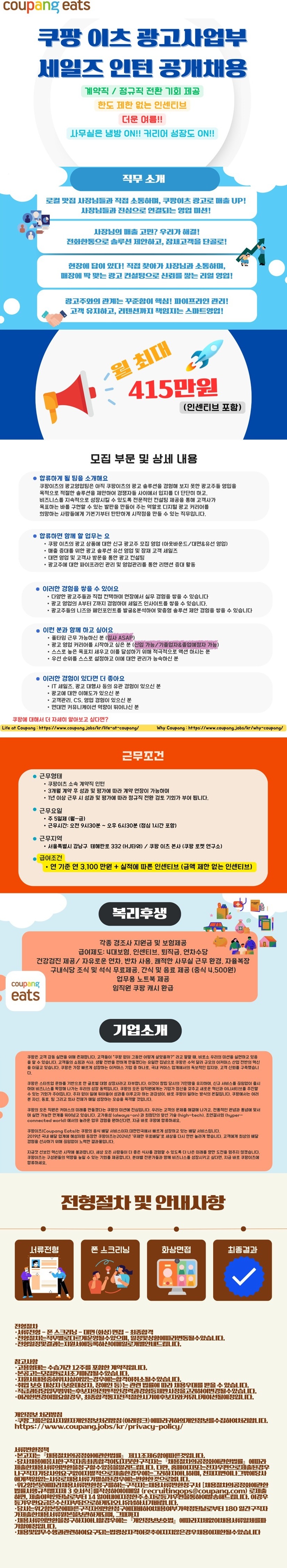 [취업] [쿠팡] 광고사업부 세일즈 인턴 공개 채용 공고