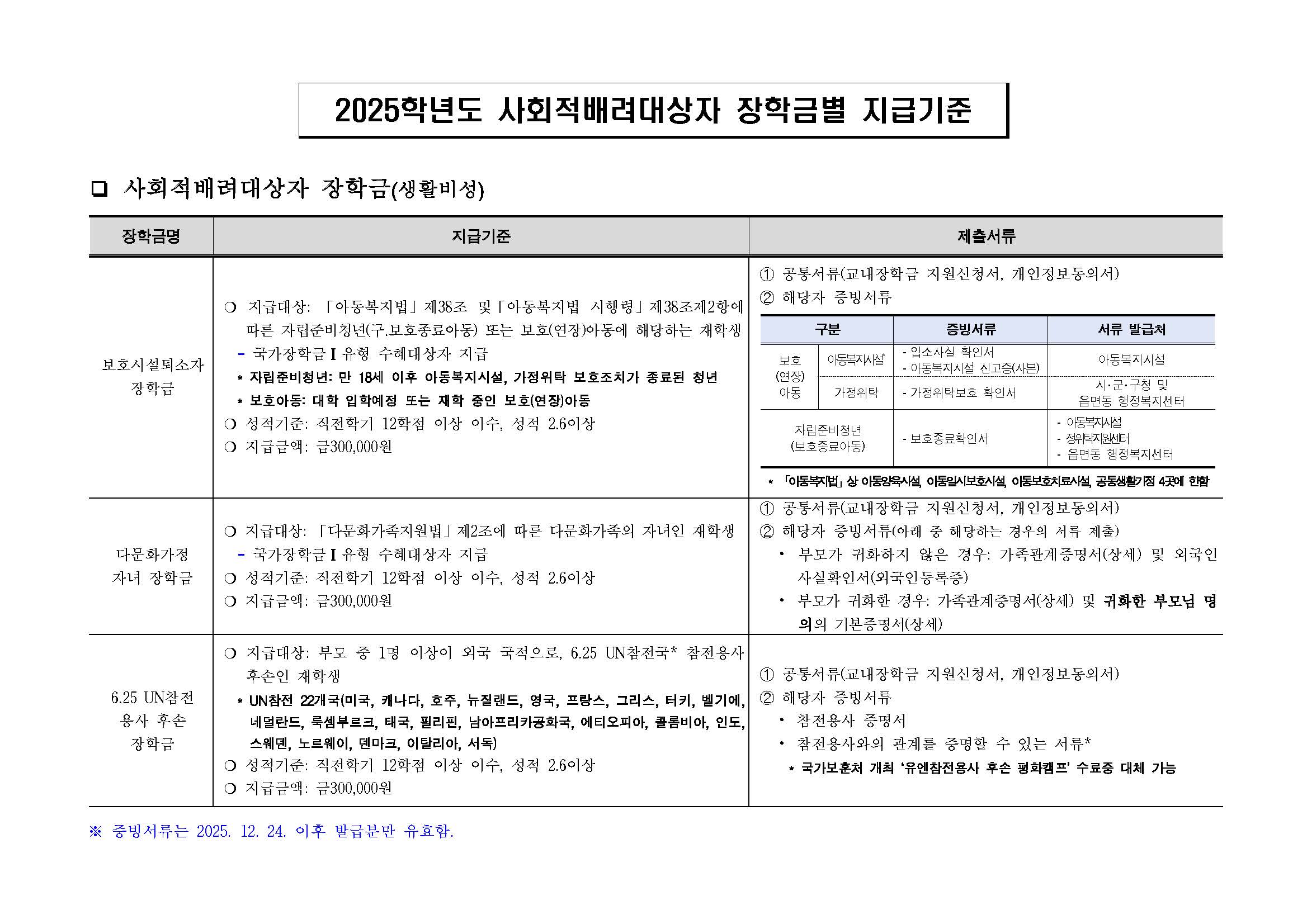 2025학년도 2학기 사회적배려대상자 장학금 신청 안내